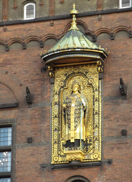 Złocona figura biskupa Absalona, założyciela Kopenhagi.
