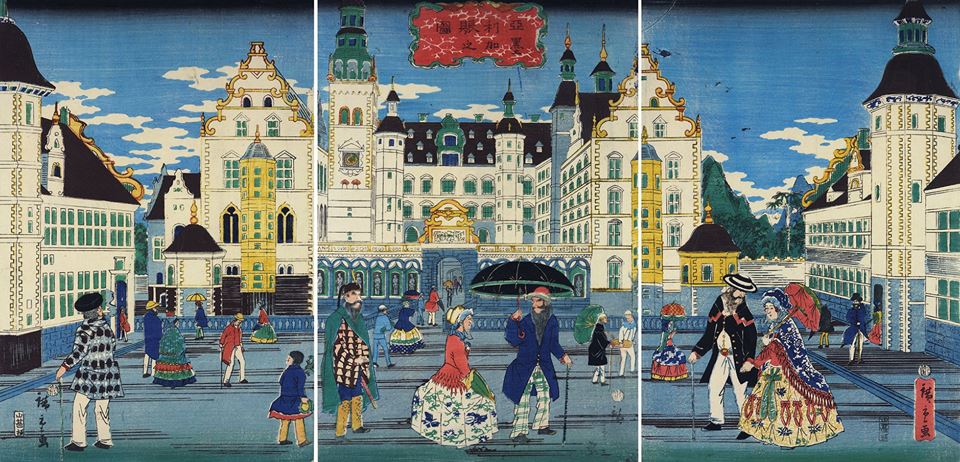 ilustracja japońskiego artysty,którego wyobrażenie o Kopenhadze dało popis fantazji,